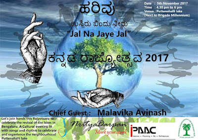 In connection with Karnataka Rajyotsava, we, Nrityadarpan, IPAAC and PNLIT are happy to announce a dance programme at the Puttenahalli Lake premises.