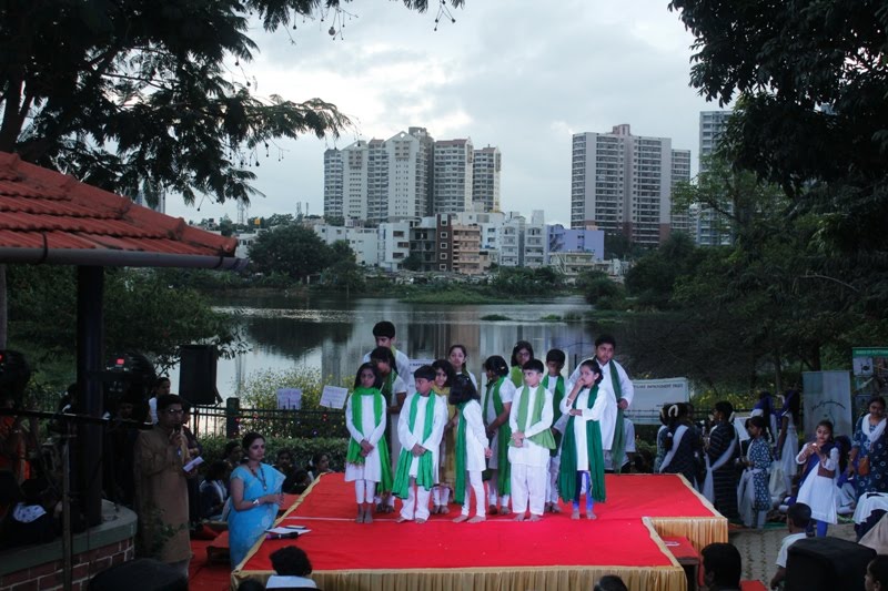 The concert is a good opportunity to release our newsletter and to felicitate our well wishers and CSR partners. Mr. B.V. Satish, Chief Engineer, Lakes, BBMP receives the first copy of our newsletter "Ripples" from the singer. PNLIT partners felicitated are Robert Bosch Engineering and Business Solutions Ltd., VMWare, Deloitte Shared Services India Pvt. Ltd., Cisco, BMS College of Engineering and the Community around the lake whose donations enable us to nurture the lake.